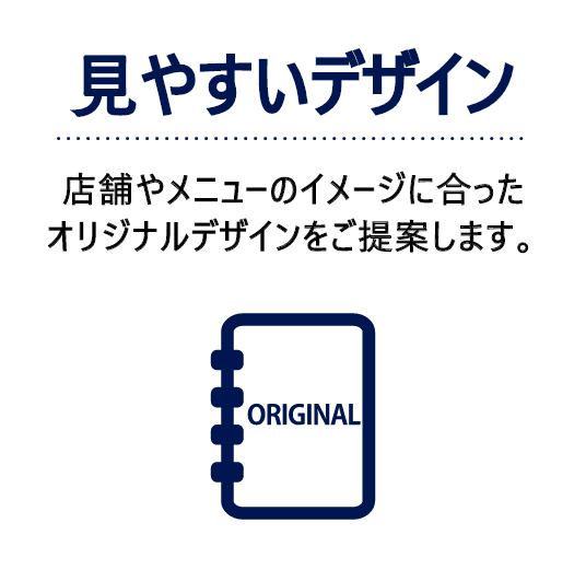 基本的な資料としては、「料理メニュー一覧」「ドリンクメニュー一覧」「料理写真」「必要なコピー(文章)」等をご用意ください。デザインのご要望・ご希望がある場合は、参考となる見本や資料を併せてご用意ください。